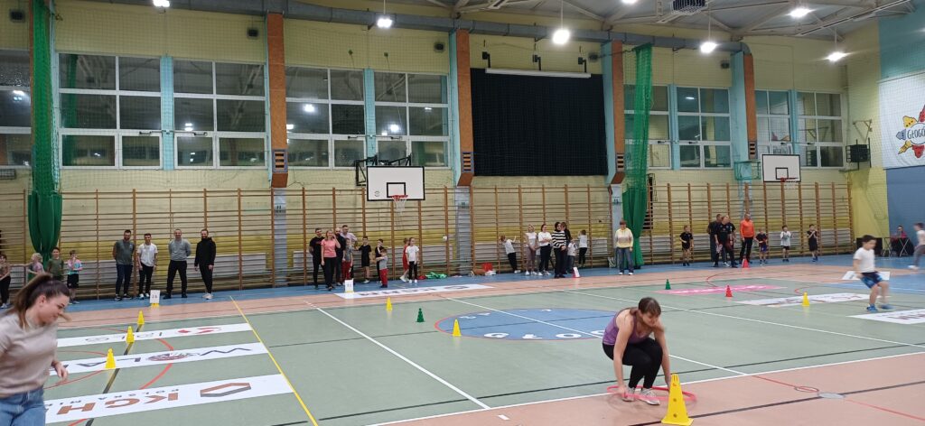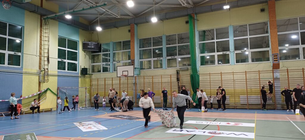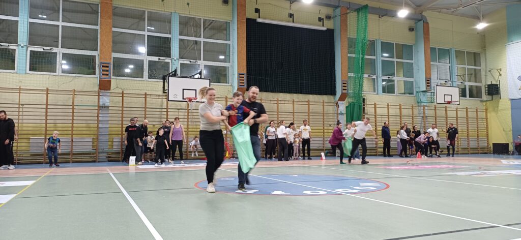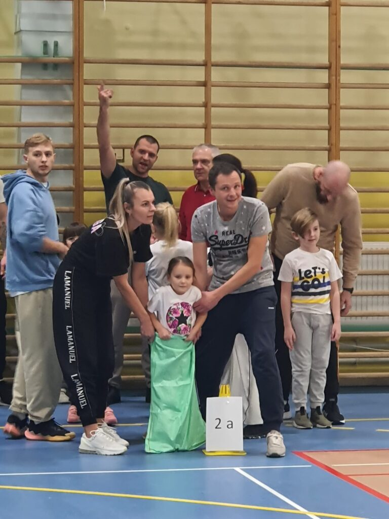 Rodzice i uczniowie mierzyli się w rywalizacji międzyklasowej, pokonywali wiele przeszkód, poszukiwali oryginalnych rozwiązań w celu osiągnięcia dobrego wyniku i zdobycia punktów, m.in. pokonywali tor przeszkód, ustawiali buty do linii mety, poszukiwali swoich butów w ogromnym worku na czas, biegali w parach złączeni szarfą, ścigali się w zabawie „wyścigi z kocami”. Nad prawidłowym przebiegiem rywalizacji czuwała komisja w składzie rodziców delegowanych z każdej klasy i jednego nauczyciela.