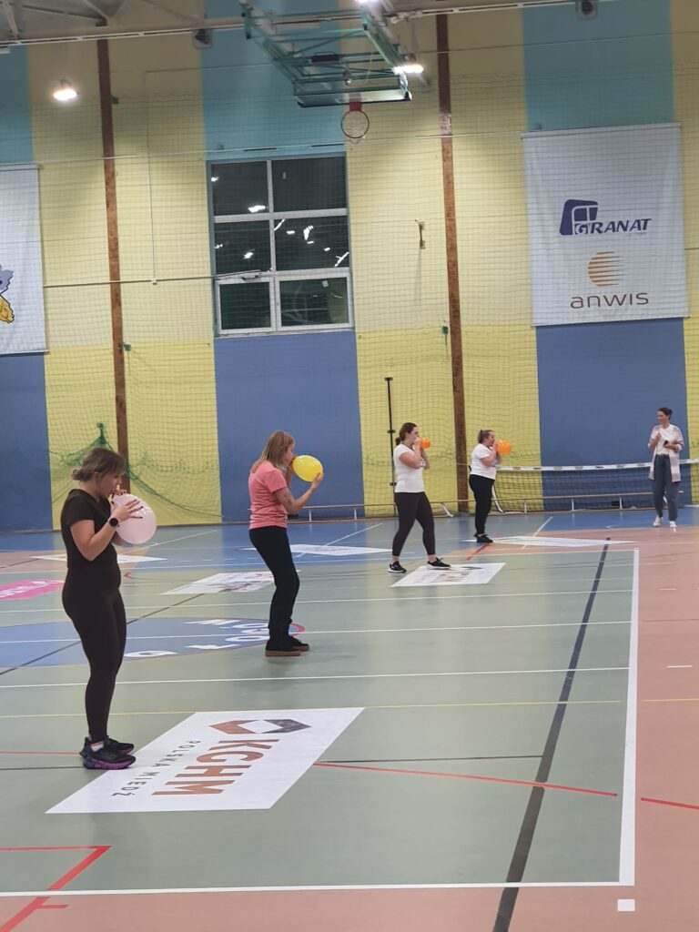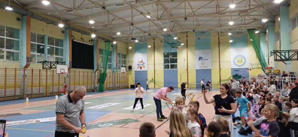 Tatusiowie i mamusie mieli również okazję zaprezentować się w specjalnych konkurencjach tj. obieranie jabłek w taki sposób, aby otrzymać jak najdłuższą obierkę, dmuchali balon do takich rozmiarów, aby pękł, przelewali wodę do butelki za pomocą łyżki. Było wiele śmiechu, frajdy, okrzyków, wsparcia swoich drużyn. Najwięcej punktów zdobyła klasa 2b, która zajęła I miejsce w turnieju. Na drugim miejscu uplasowała się klasa 2e, a czołową trójkę zamknęła klasa 2a. Serdecznie gratulujemy!