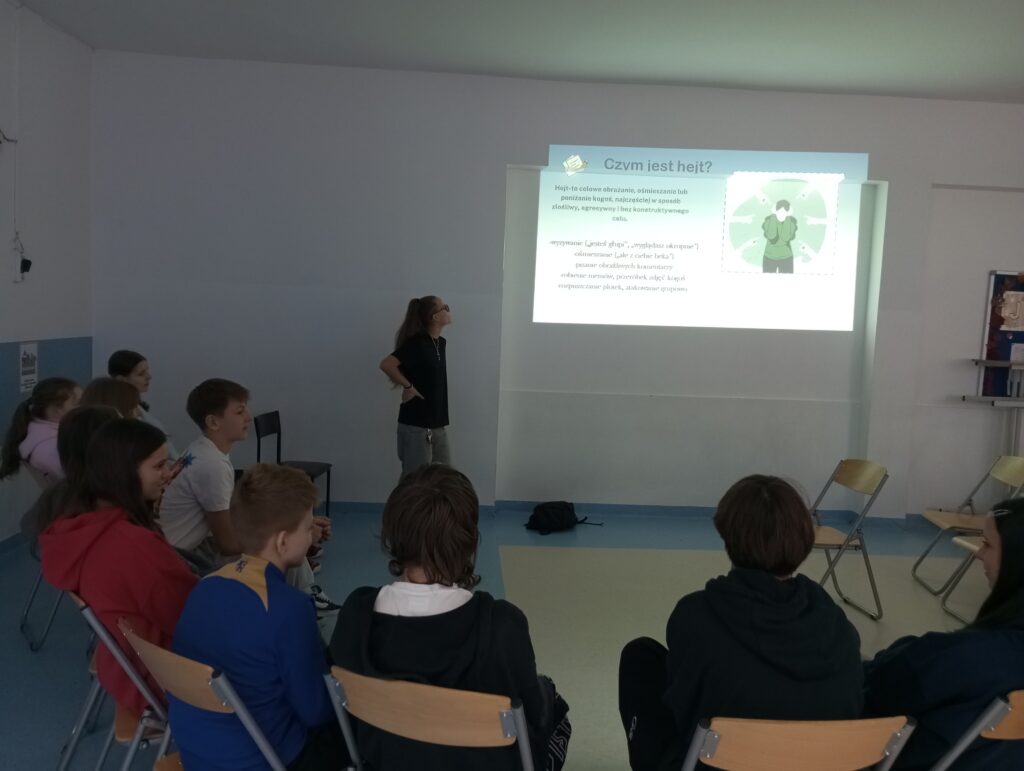 Spotkanie rozpoczęło się krótkim wprowadzeniem, które poprowadziła Przewodnicząca SU i rzecznik Praw Ucznia, podczas którego przypomniano definicję hejtu, jego przyczyny oraz konsekwencje dla osób hejtowanych. Podkreślono również różnicę między konstruktywną krytyką a obraźliwymi komentarzami.
