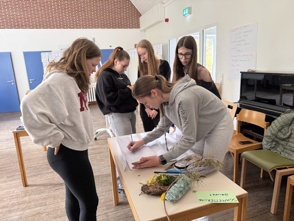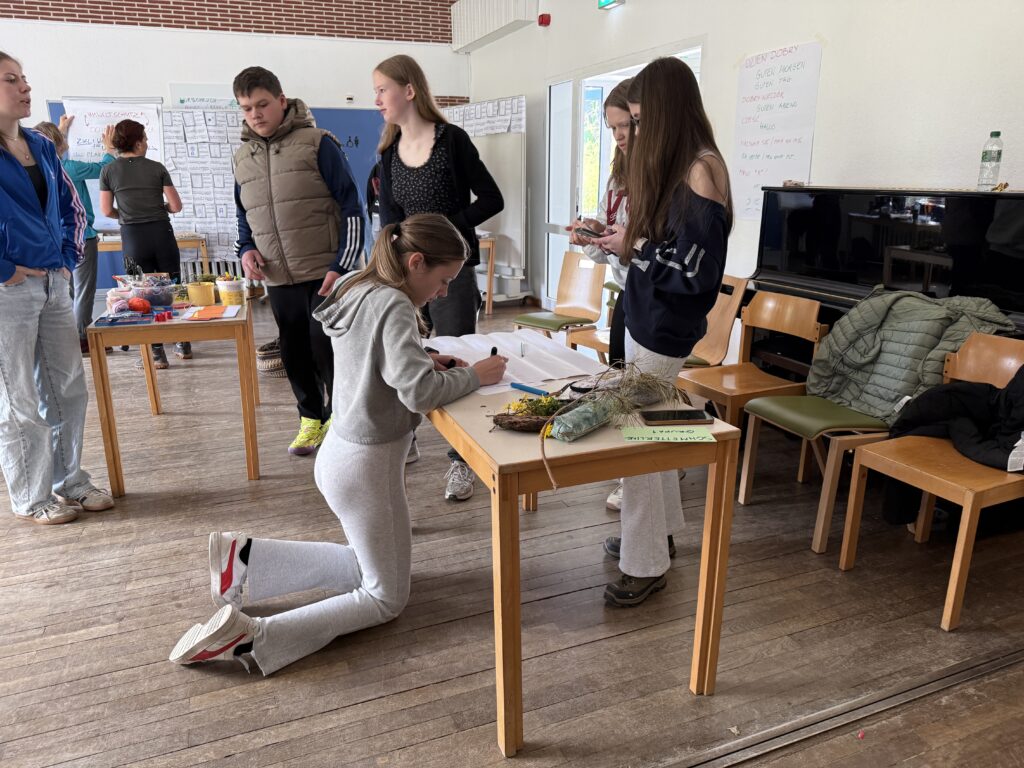 Warsztaty kreatywne opierały się na wykorzystaniu naturalnych skarbów, które uczniowie sami odnajdywali w terenie. Nad sprawną komunikacją i przebiegiem zajęć językowo-integracyjnych czuwali polscy i niemieccy moderatorzy: Jenny Eisenschmidt, Malwina Fitko – pośrednik językowy, tłumacz konferencyjny oraz wykładowczyni uniwersytecka . Tłumaczyła Karolina Wachowicz – wykładowczyni uniwersytecka. Całość projektu wspierała z ramienia Ev. Jugendbildungs – und Begegungsstätte Hirschluch pani Maria Fus-Bucher.