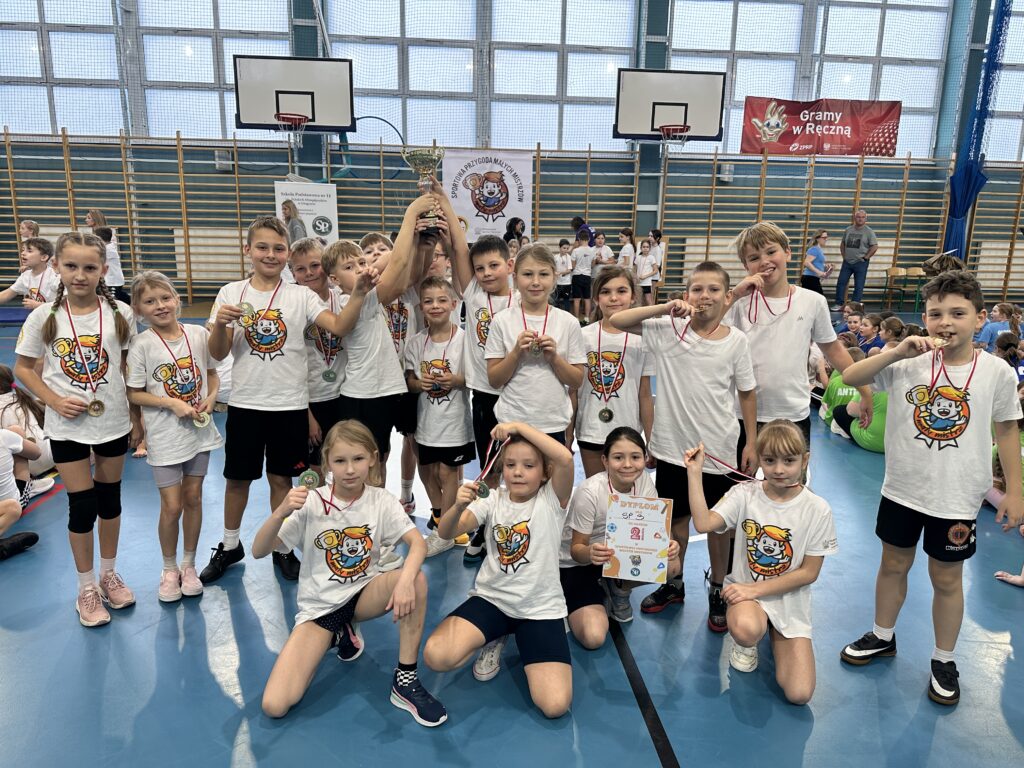 Dobiegła końca kolejna edycja programu „Mały Mistrz”, który przez ostatnie miesiące wspierał rozwój sprawności fizycznej najmłodszych uczniów. To wyjątkowa inicjatywa, dzięki której dzieci mogły nie tylko doskonalić swoje umiejętności ruchowe, ale także odkrywać radość płynącą z aktywności fizycznej. W ramach zajęć uczestnicy programu mieli również wyjątkową okazję spotkać się z mistrzem sportu, który podzielił się swoim doświadczeniem, pasją i motywacją do aktywnego stylu życia. Wzięli udział w turnieju, w którym zaprezentowali swoje umiejętności i sportową postawę. Dzięki świetnej współpracy i determinacji udało im się osiągnąć znakomite 2-miejsce, co jest ogromnym powodem do dumy i potwierdzeniem ich rosnącej sprawności, wykonali wymagane testy sprawności fizycznej. Program „Mały Mistrz” to nie tylko ruch — to także nauka współpracy, zdrowej rywalizacji i budowania pewności siebie. Dzieci chętnie angażowały się w kolejne zadania, zdobywały nowe umiejętności i z entuzjazmem podejmowały sportowe wyzwania. Zakończona edycja ponownie pokazała, jak ważne jest wspieranie aktywności fizycznej od najmłodszych lat. Dzięki zaangażowaniu nauczycieli oraz pozytywnej energii uczniów program przyniósł wiele radości, satysfakcji i wartościowych doświadczeń.