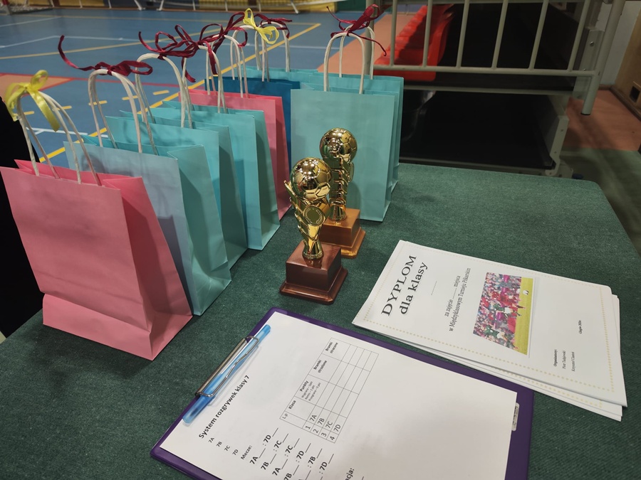 W dniu 28.02.2026r. (środa) w hali sportowej odbyła się kolejna edycja Międzyklasowego Turnieju Piłkarskiego Klas 7 i 8. W turnieju wzięły udział trzy klasy siódme oraz wszystkie klasy ósme. Najpierw do rywalizacji piłkarskiej stanęły klasy siódme. Rozgrywki były prowadzone systemem „każdy z każdym”. Po zaciętej i emocjonującej rywalizacji zwycięzcą turnieju wśród klas siódmych okazała się klasa 7D, drugie miejsce zajęła klasa 7C, natomiast na trzeciej pozycji uplasowała się klasa 7B. Wśród klas ósmych również było sporo emocji. Mecze były zacięte i obfitowały w wiele atrakcyjnych akcji i pięknych goli. Ostatecznie pierwsze miejsce w rywalizacji klas ósmych zajęła klasa 8A. Na drugiej pozycji znalazła się drużyna z klasy 8B, a na trzeciej lokacie uplasowała się ekipa z klasy 8D. Czwarte miejsce zajęła klasa 8C, a piąte klasa 8E.