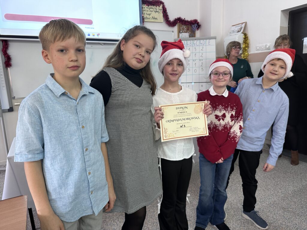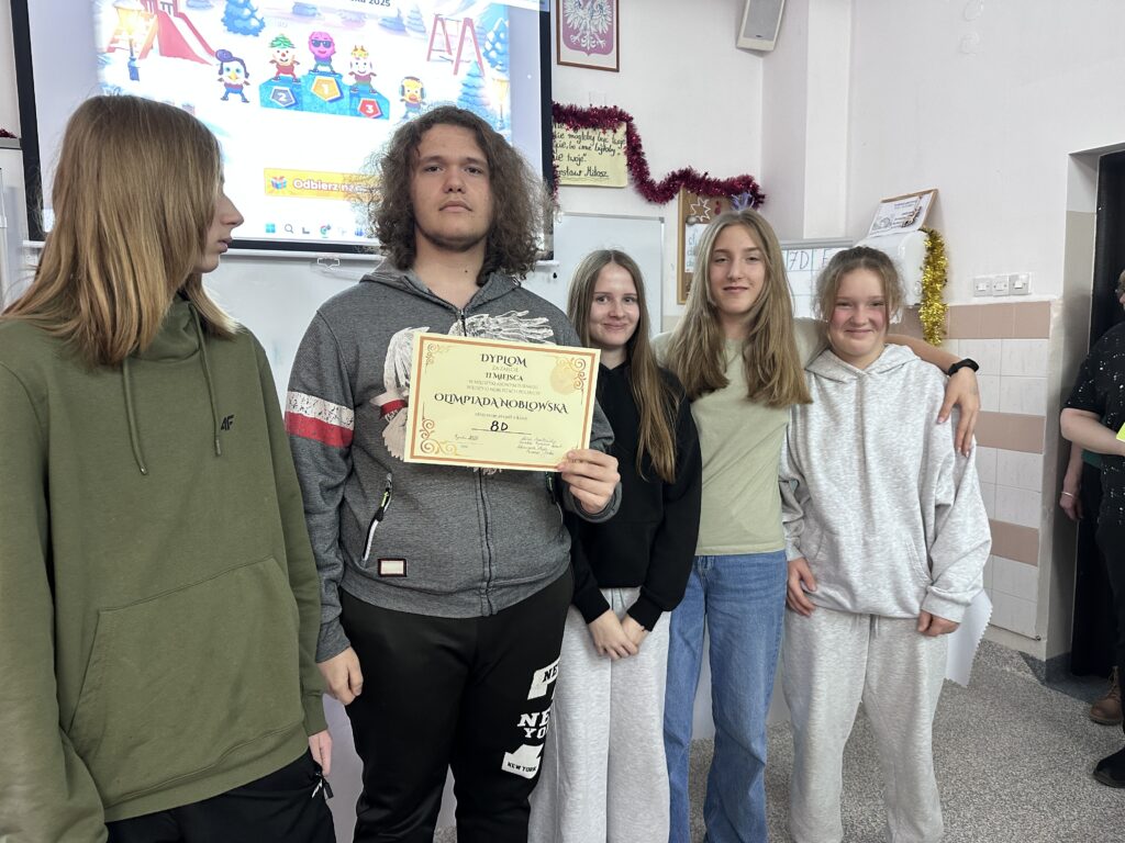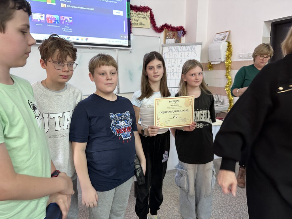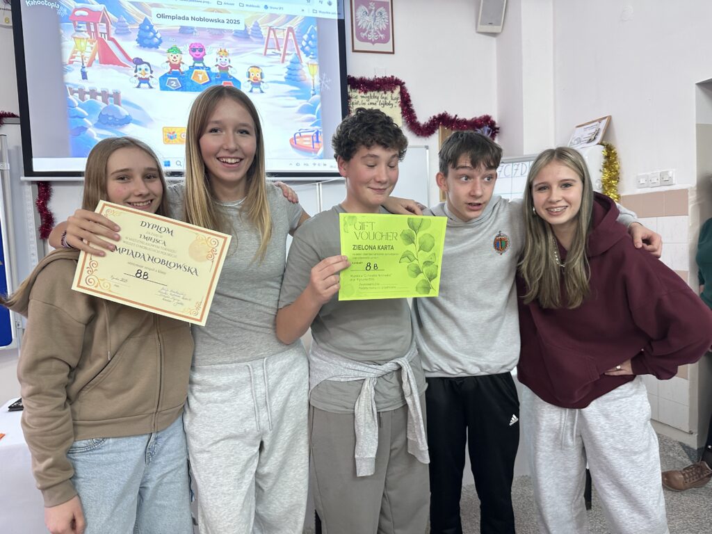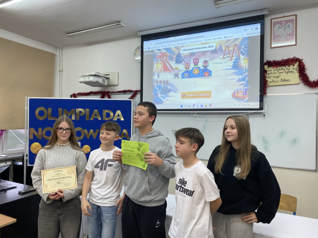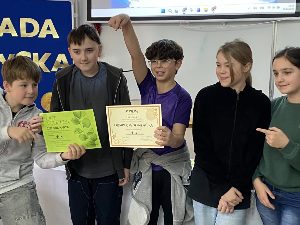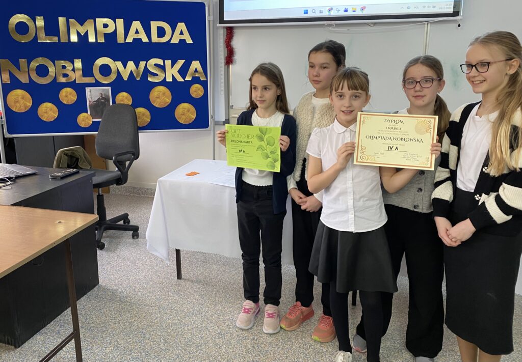 Olimpiada Noblowska spotkała się z dużym zaangażowaniem uczniów. W szkolnych korytarzach można podziwiać prace zespołów klasowych, m.in. lapbooki i plakaty. Wydarzenie zakończyło się wręczeniem zwycięskim klasom vouchera – Zielonej Karty, umożliwiającej dzień bez kartkówki i odpowiedzi ustnych.
