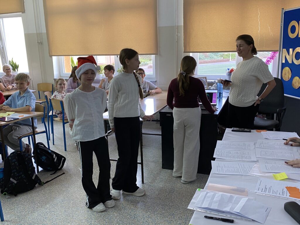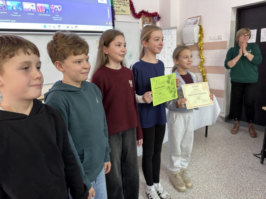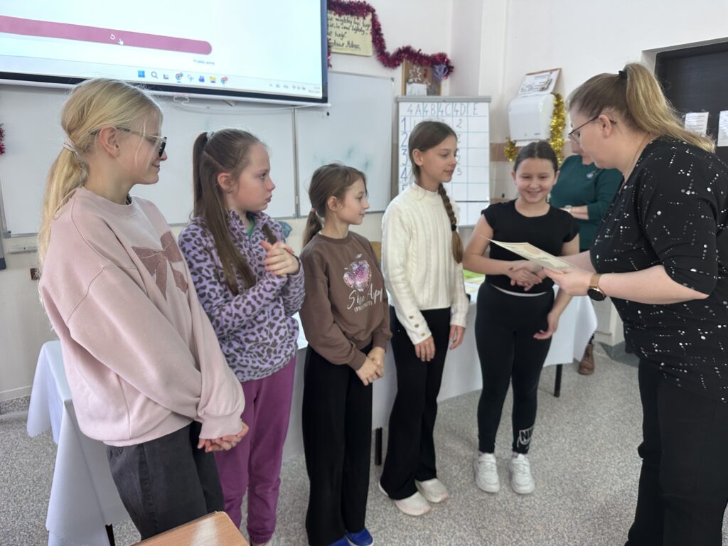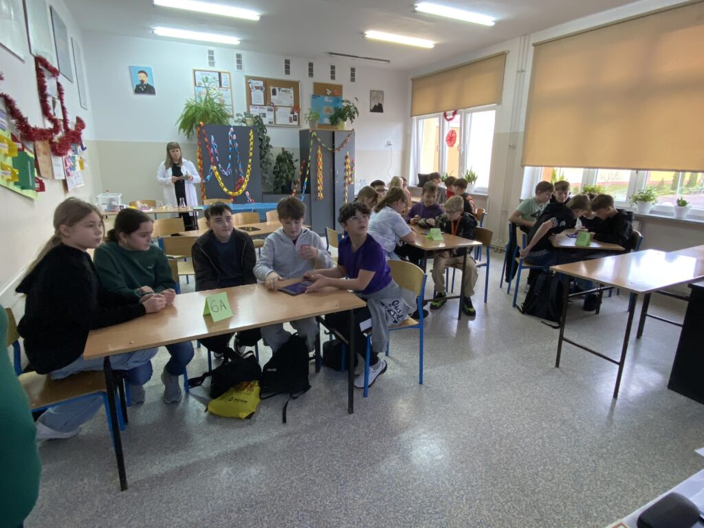 Szeroko wykorzystano narzędzia cyfrowe i internetowe, co jest zgodne z kierunkiem polityki oświatowej na rok szkolny 2025/2026 dotyczącej rozwijania kompetencji cyfrowych uczniów. Podczas rywalizacji wiedzy w aplikacji Kahoot najlepsze wyniki osiągnęły klasy 6, które wyróżniły się szybkim i poprawnym udzielaniem odpowiedzi. Najwięcej trudności sprawiło dopasowywanie cytatów do odpowiednich Noblistów.