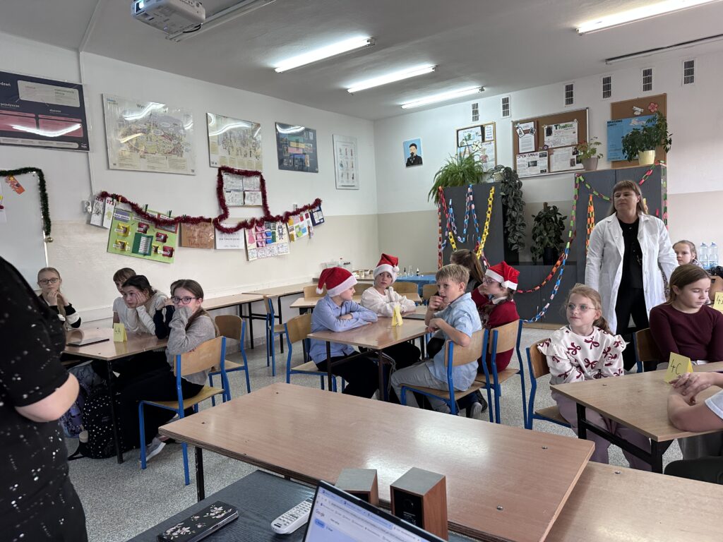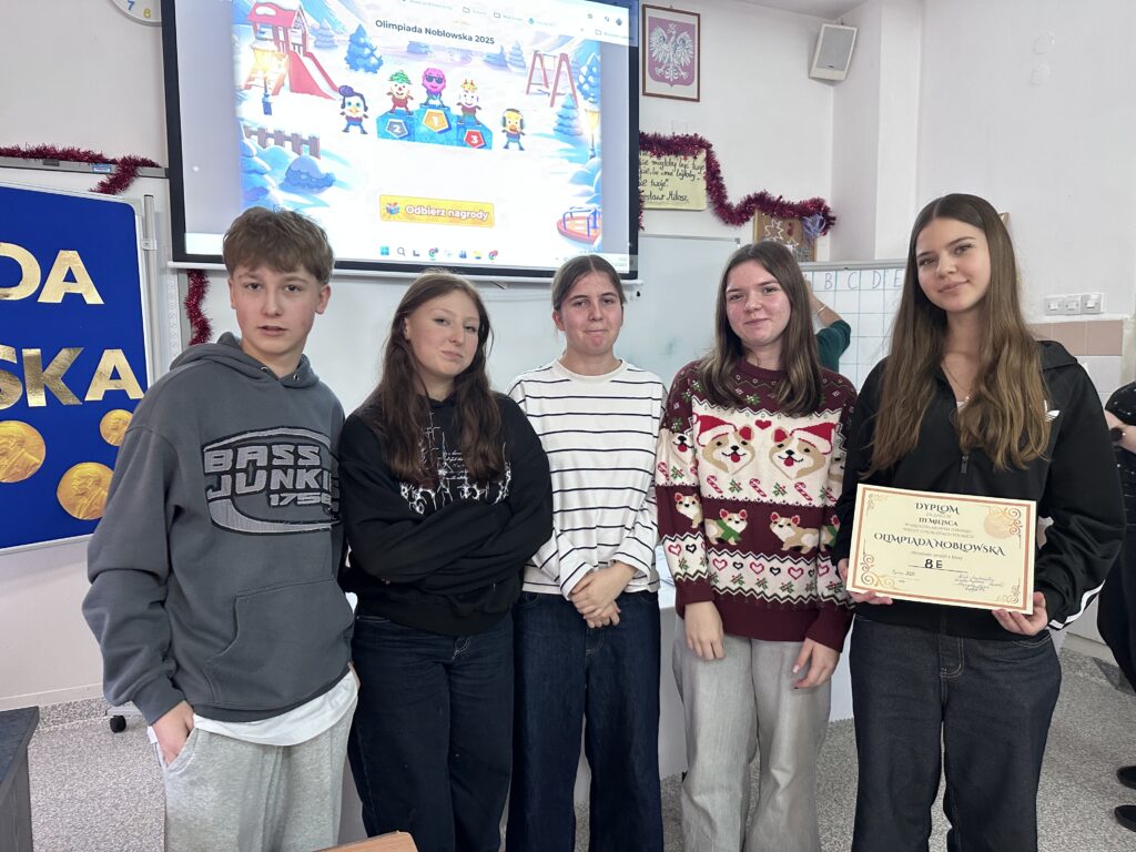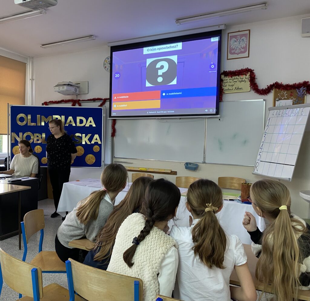 W dniu 9 grudnia 2025 roku w naszej szkole obchodziliśmy Dzień Patrona – Noblistów Polskich. W wydarzeniu wzięli udział uczniowie klas 4–8, którzy uczestniczyli w zajęciach poświęconych sylwetkom i osiągnięciom polskich laureatów Nagrody Nobla. Zgodnie z harmonogramem, uczniowie brali udział w projekcjach filmowych, dyskusjach, zajęciach interaktywnych, escape roomach oraz przystąpili do szkolnej 'Olimpiady Noblowskiej’.