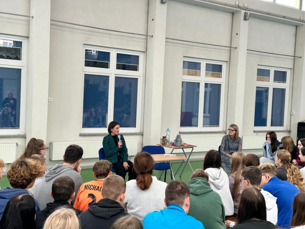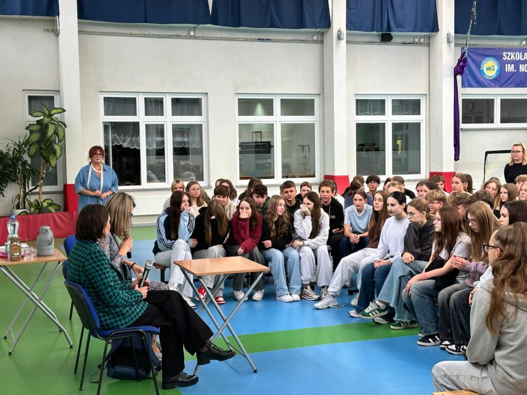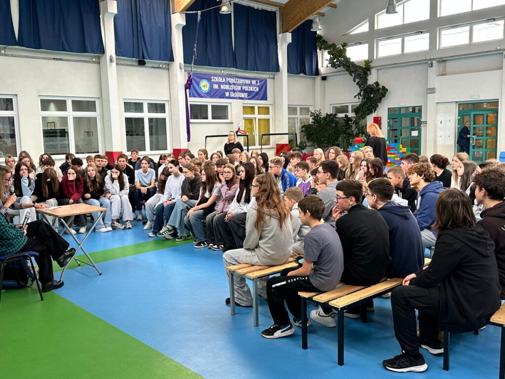 Początek października obfitował w liczne działania profilaktyczne związane z Tygodniem o Przeciwdziałaniu Przemocy Rówieśniczej. Do najważniejszych działań zaliczamy spotkanie klas 7 i 8 z sędzią Sądu Rejonowego w Głogowie III Wydział Rodzinny i Nieletnich, panią Aleksandrą Leszczyńską i kuratorem panią Agatą Kołodziej. Uczestnictwo w niezwykle ważnej lekcji prawnej stało się przyczynkiem do rozszerzenia wiedzy młodzieży na temat hejtu, trollingu i wszystkich rodzajów przemocy oraz konsekwencji prawnych za jej stosowanie.