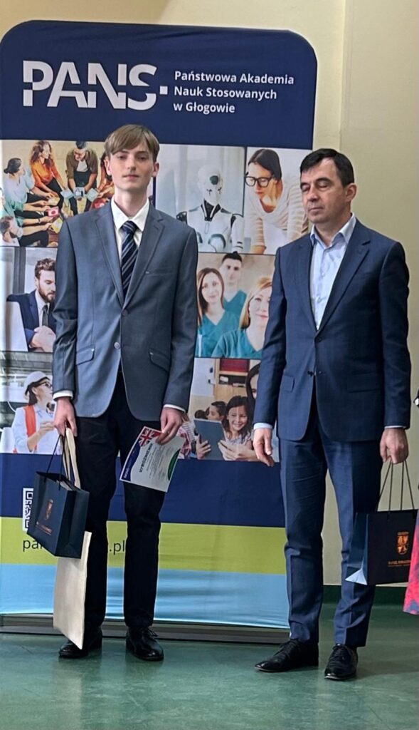 Dnia 17 marca odbyło się XVI Głogowskie Dyktando z języka angielskiego. Uczeń klasy 8a Krzysztof Kosik odniósł w nim ogromny sukces i zdobył wyróżnienie w postaci V miejsca. 8 kwietnia odebrał nagrodę w auli PANS. Serdecznie gratulujemy i życzymy Krzysztofowi dalszych sukcesów.