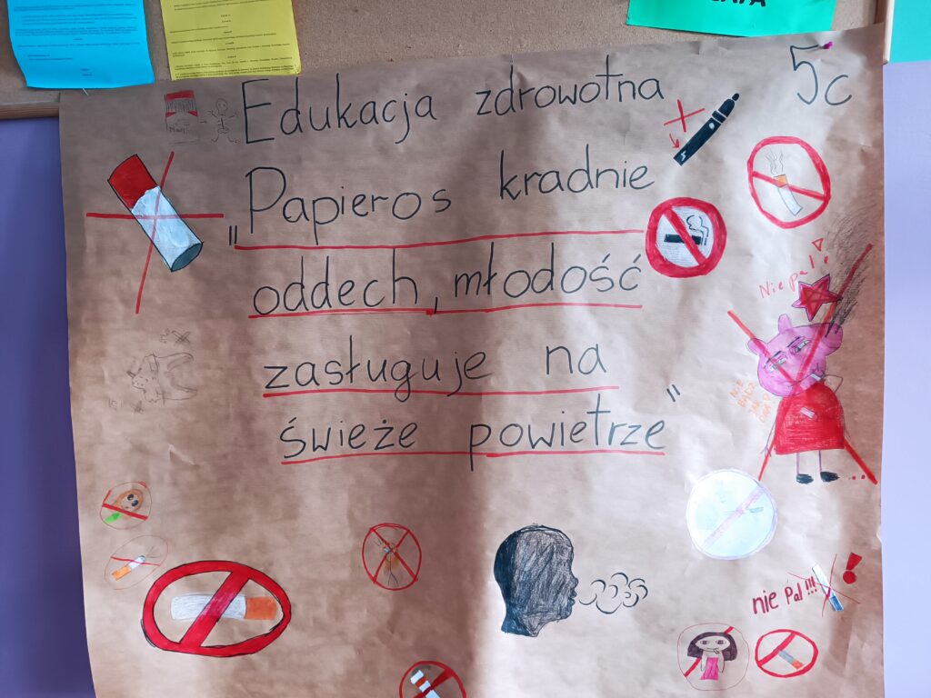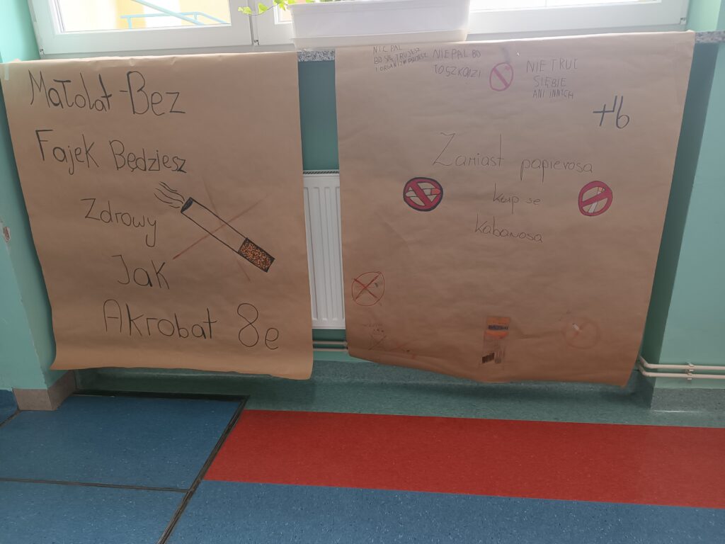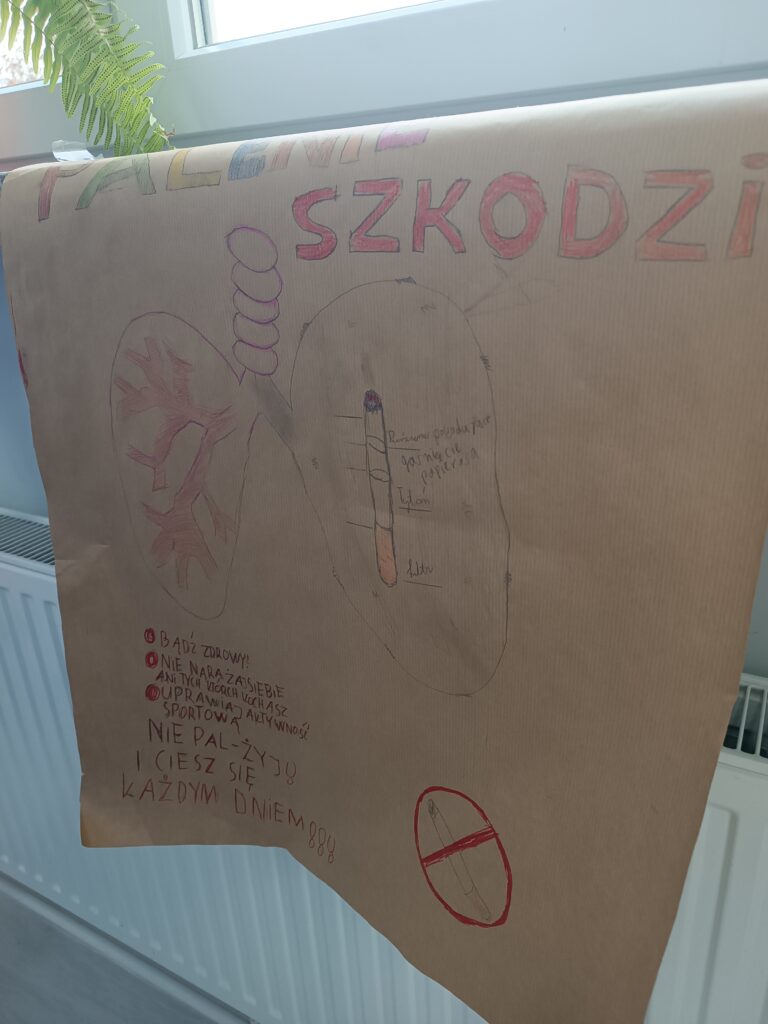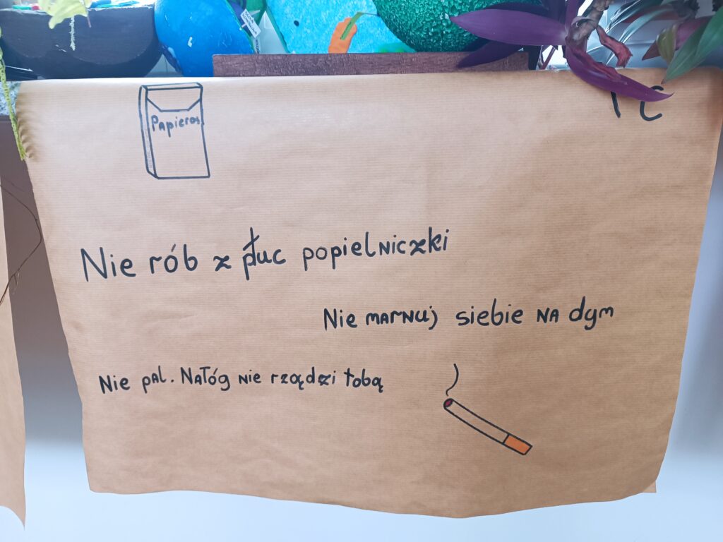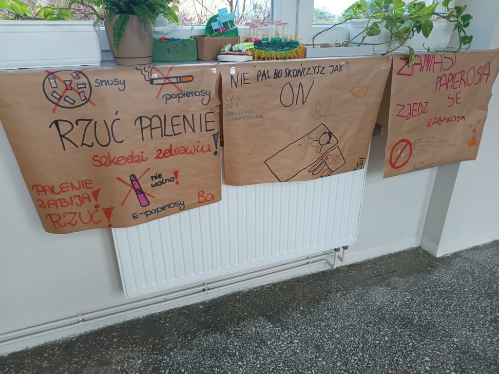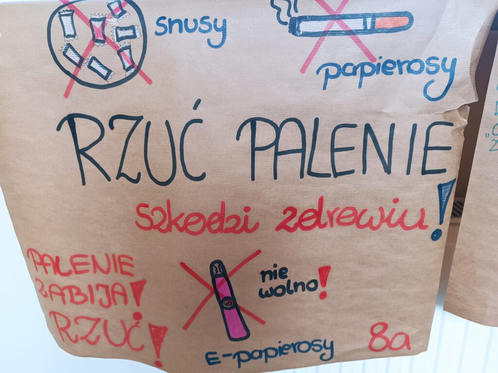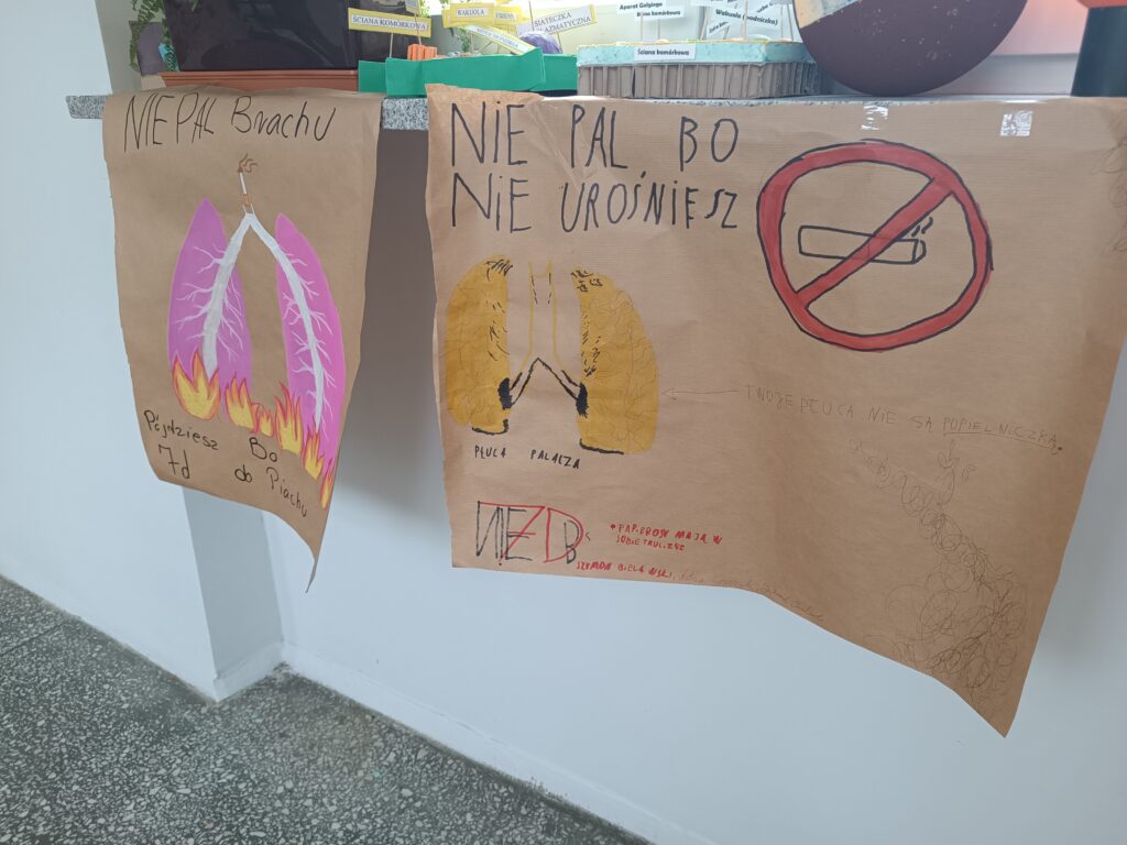 W trzeci czwartek listopada nasza szkoła obchodziła Światowy Dzień Rzucania Palenia. Wydarzenie miało na celu zwrócenie uwagi na szkodliwość palenia tytoniu i zachęcenie do prowadzenia zdrowego stylu życia. Na lekcjach przyrody, biologii i edukacji zdrowotnej uczniowie przygotowali plakaty oraz hasła ostrzegające przed konsekwencjami palenia, takimi jak choroby płuc, serca czy nowotwory. Podkreślano również negatywny wpływ na wygląd i kondycję fizyczną. Dzięki aktywnemu zaangażowaniu młodzieży obchody stały się ważnym elementem edukacji prozdrowotnej i przyczyniły się do zwiększenia świadomości wśród społeczności szkolnej pokazując, że młode pokolenie potrafi świadomie sprzeciwiać się nałogom.