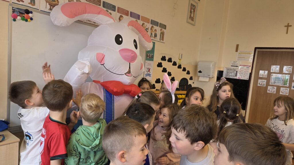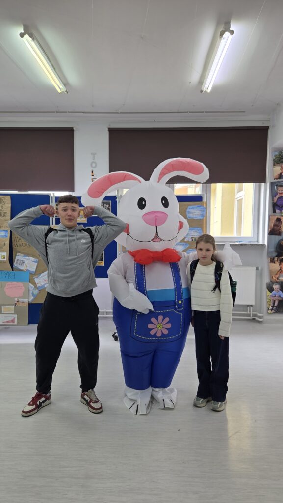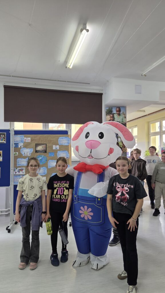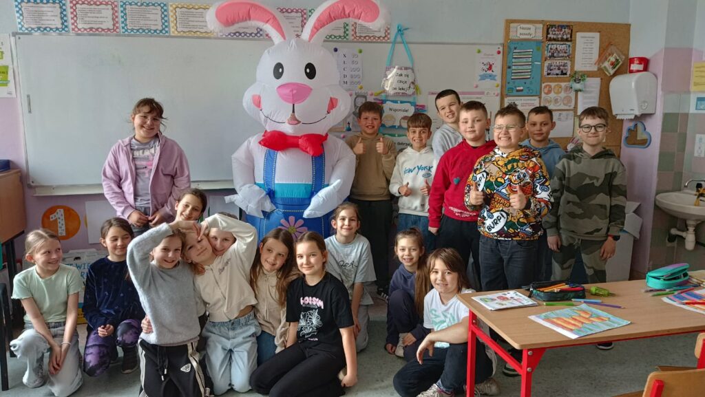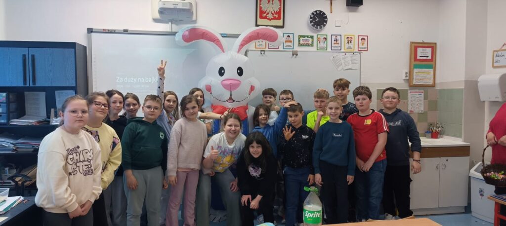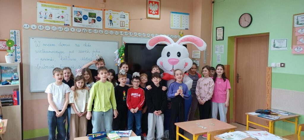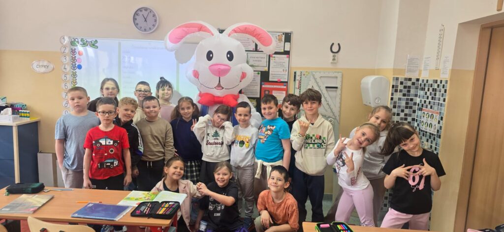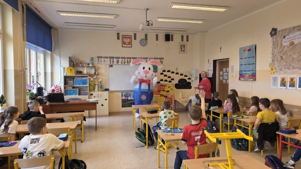 Tuż przed świętami wszystkie klasy 1-3 odwiedził królik wielkanocny, który wraz z Panią wicedyrektor i Panią Kamilą przypomniał uczniom o zasadach bezpieczeństwa podczas przerwy świątecznej. Zachęcał, aby w czasie wolnym bawić się bezpiecznie, uważać na drodze oraz słuchać opiekunów.