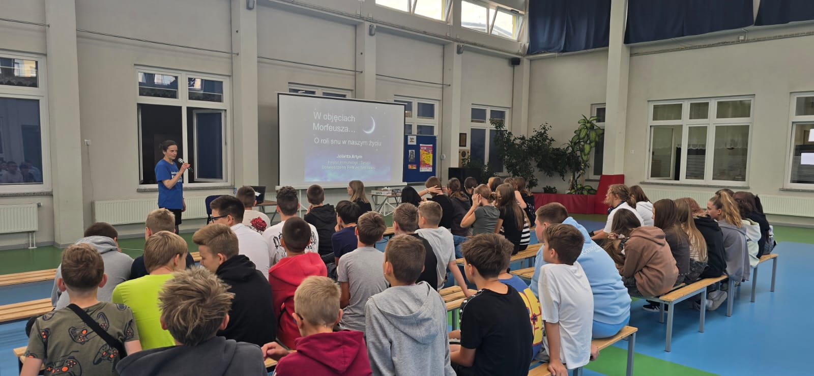 W naszej szkole odbył się także wykład „W objęciach Morfeusza… .O roli snu w naszym życiu”, który poprowadziła dr Jolanta Artym z Polskiej Akademii Nauk, z Instytutu Immunologii i Terapii Doświadczalnej im. Ludwika Hirszfelda. Po wysłuchanie wykładu uczniowie zadawali pytania, na które Pani doktor chętnie odpowiadała.