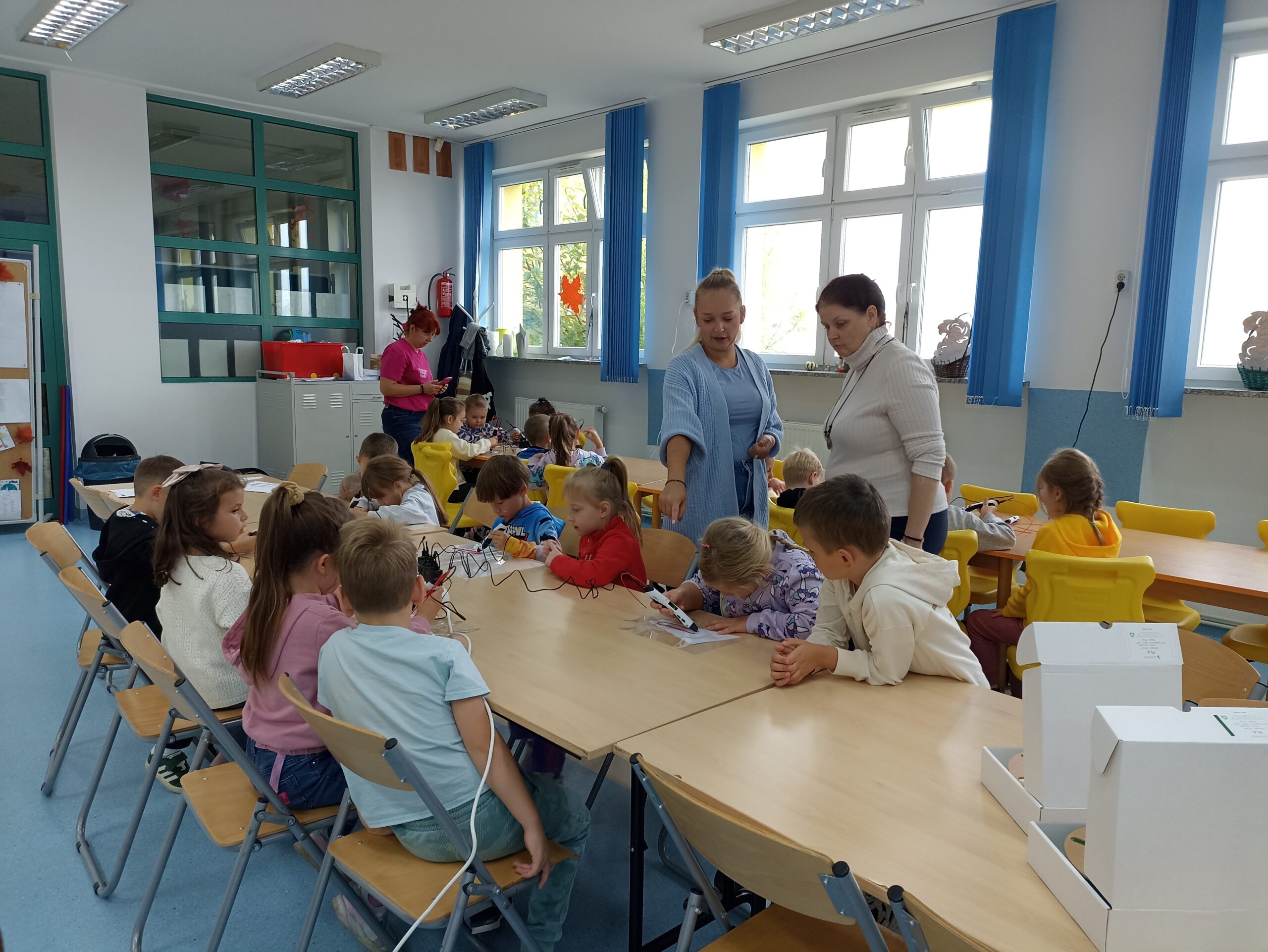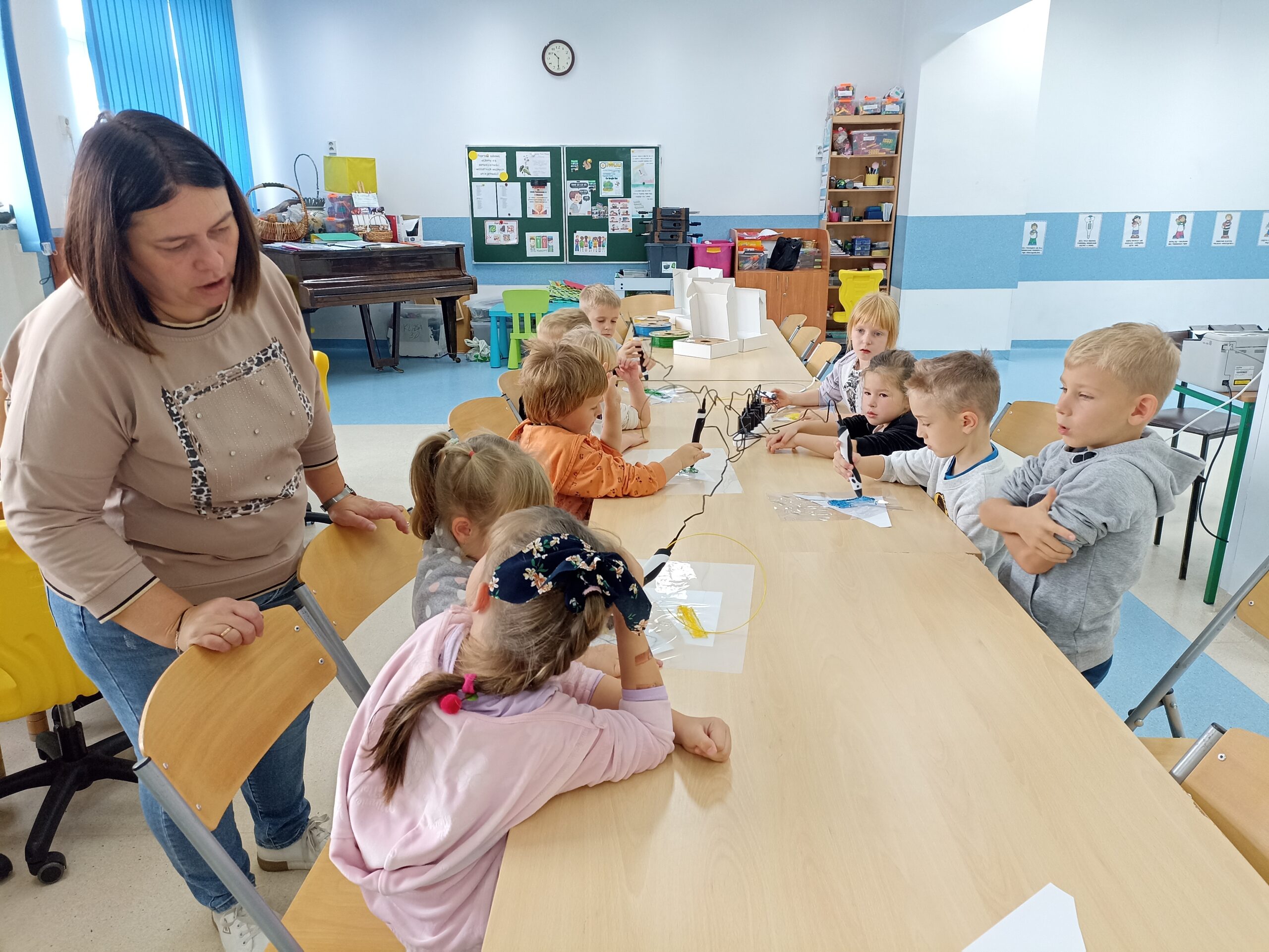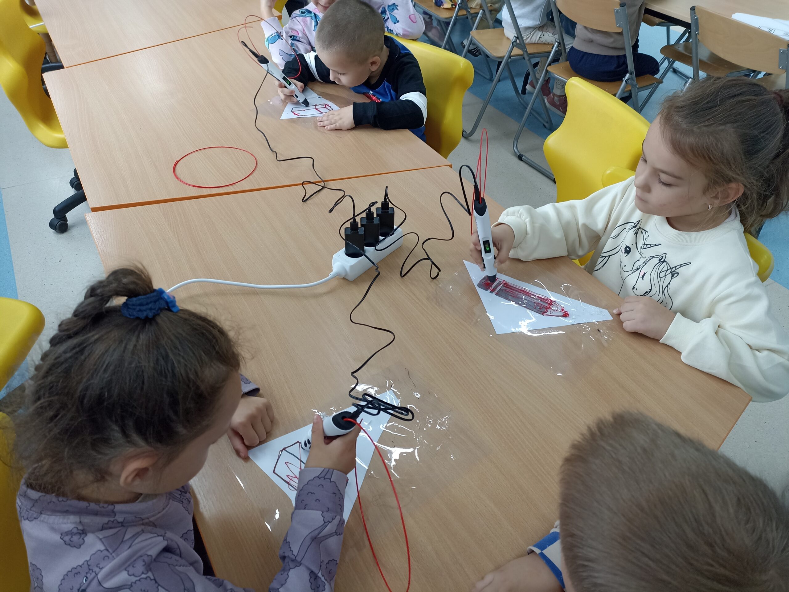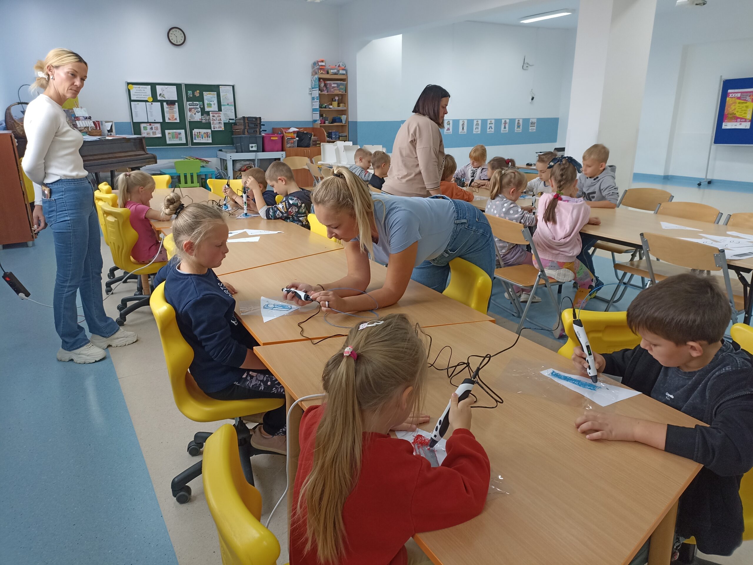 „Długopisy 3D”. Panie: Anna Michałowska i Sandra Piotrowska – nauczycielki edukacji wczesnoszkolnej i koordynatorki festiwalu w naszej szkole zapoznały przedszkolaków z długopisami 3D. Dzieci dowiedziały się, jak je obsługiwać oraz poznały sposoby tworzenia modeli 3D. Nasi milusińscy goście z chęcią przystąpili do wykonywania modeli 3D.
