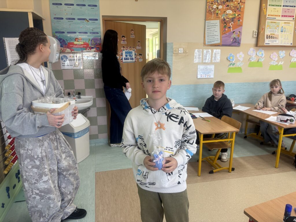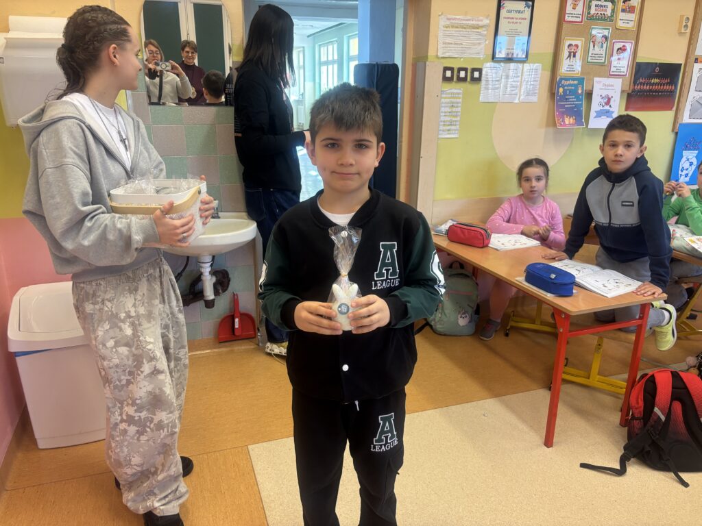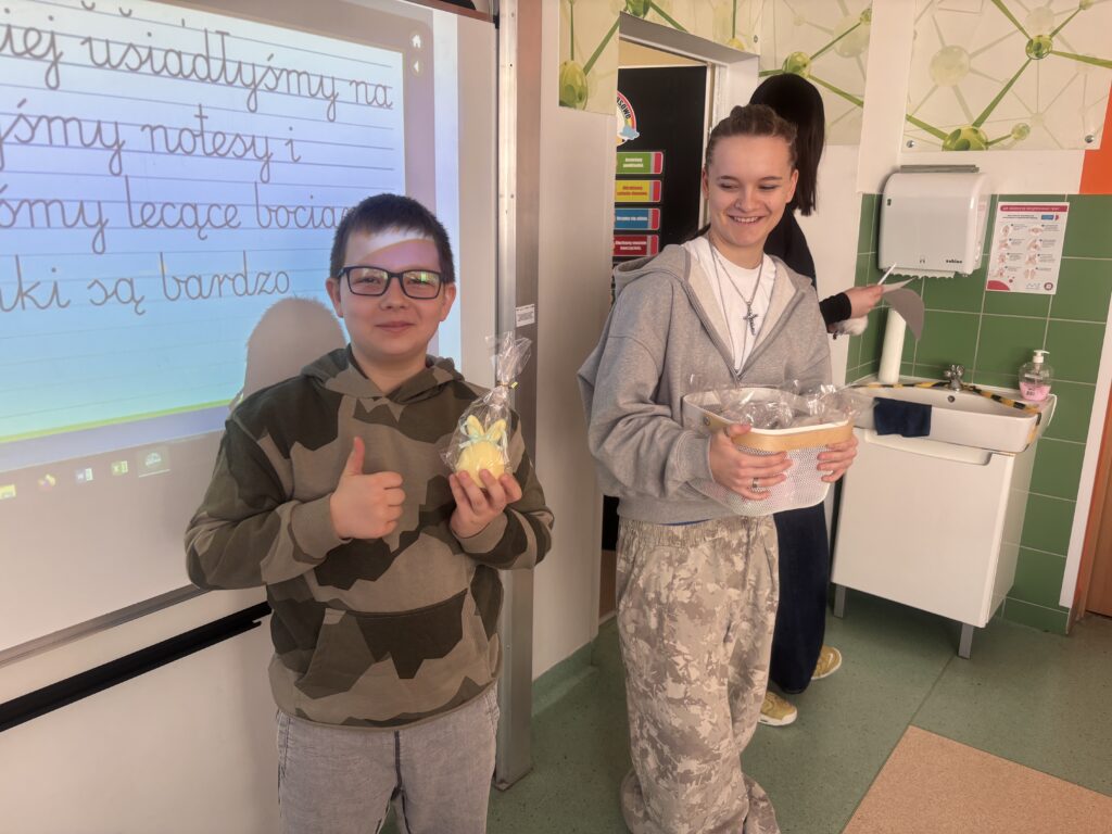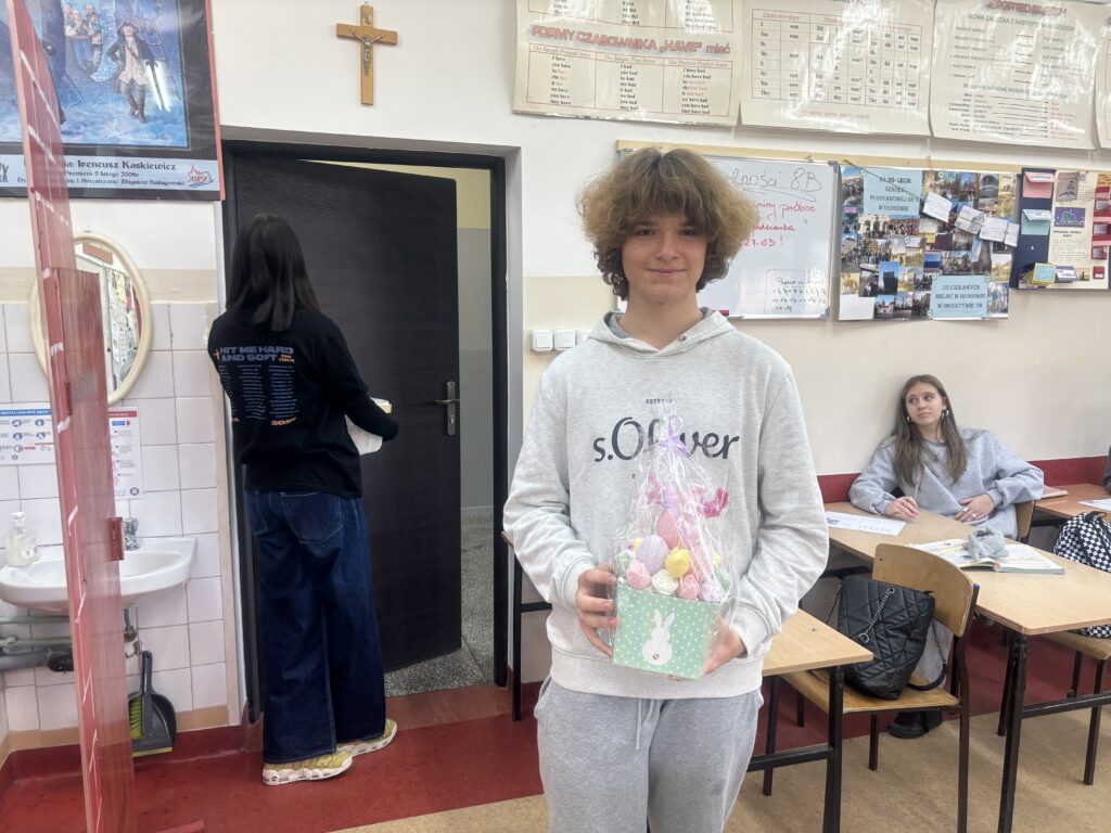 Dnia 27 marca 2026 odbyło się losowanie kuponów wielkanocnych, które kupowane były w ramach akcji charytatywnej „Złap króliczka” na rzecz chorych uczniów naszej szkoły. Losowanie odbyło się w obecności klasy VIII a i przeprowadzała je przewodnicząca Samorządu Uczniowskiego Maja Biedal. Szczęśliwcami, którzy wygrali główne nagrody, czyli wielkanocne flowerbooksy, to Wojciech Kuc  i Wiktoria Solińska. Świeczki króliczki wygrali: Michał Krupa, Zuzanna Gieroń, Aleksandra Górecka, Jakub Janus, Ksawery Mazur, Ksawery Dudek, Antoni Walkowiak, Stanisław Adamczyk, Antoni Serediuk, Maja Grygiel, Róża Głogowska i Blanka Kozłowska. Wszystkim zwycięzcom gratulujemy, a wszystkim, którzy dołączyli się do zabawy bardzo dziękujemy za wsparcie akcji.
