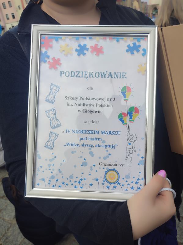 Uczniowie Szkoły Podstawowej nr 3 w Głogowie aktywnie włączyli się w „Niebieski Marsz”