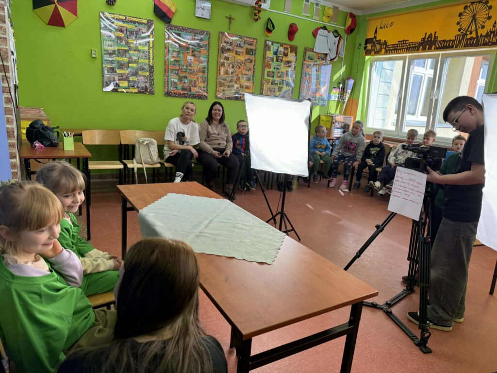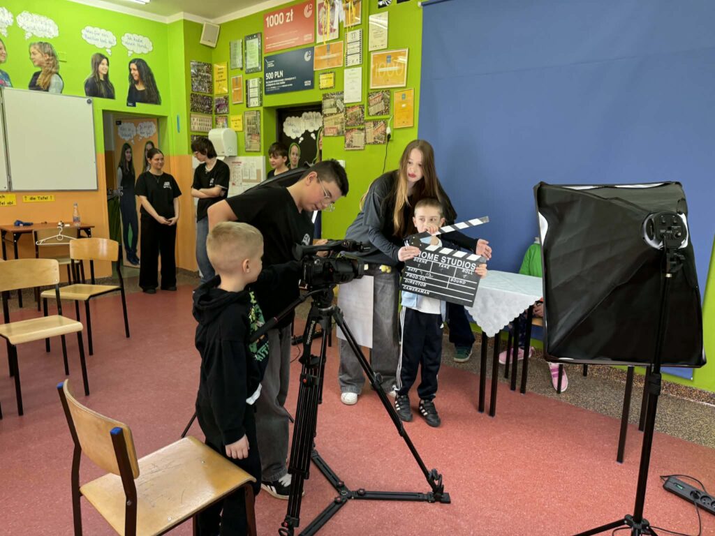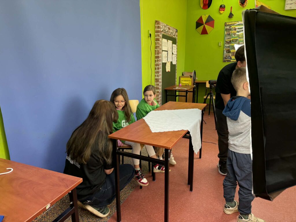 W ramach Dni Otwartych Szkoły mieliśmy przyjemność gościć w naszej szkole przedszkolaki, które kiedyś być może zostaną naszymi uczniami. Międzyszkolna Sekcja Filmowa GIM TV przygotowała dla najmłodszych mini – warsztaty filmowe oraz pokaz nagrywania wiadomości. Można było wcielić się w rolę prezentera, kamerzysty – „klapnąć klapsem”, a także zmontować króciutką scenę w filmiku poklatkowym. Nasi fimowcy zaprezentowali sprzęt filmowy: kamery, reflektory, gimbale i mikrofony, które najczęściej używamy w nagraniach. Mamy nadzieję, że zajęcia się podobały i zapraszamy w progi naszej szkoły i koła filmowego!