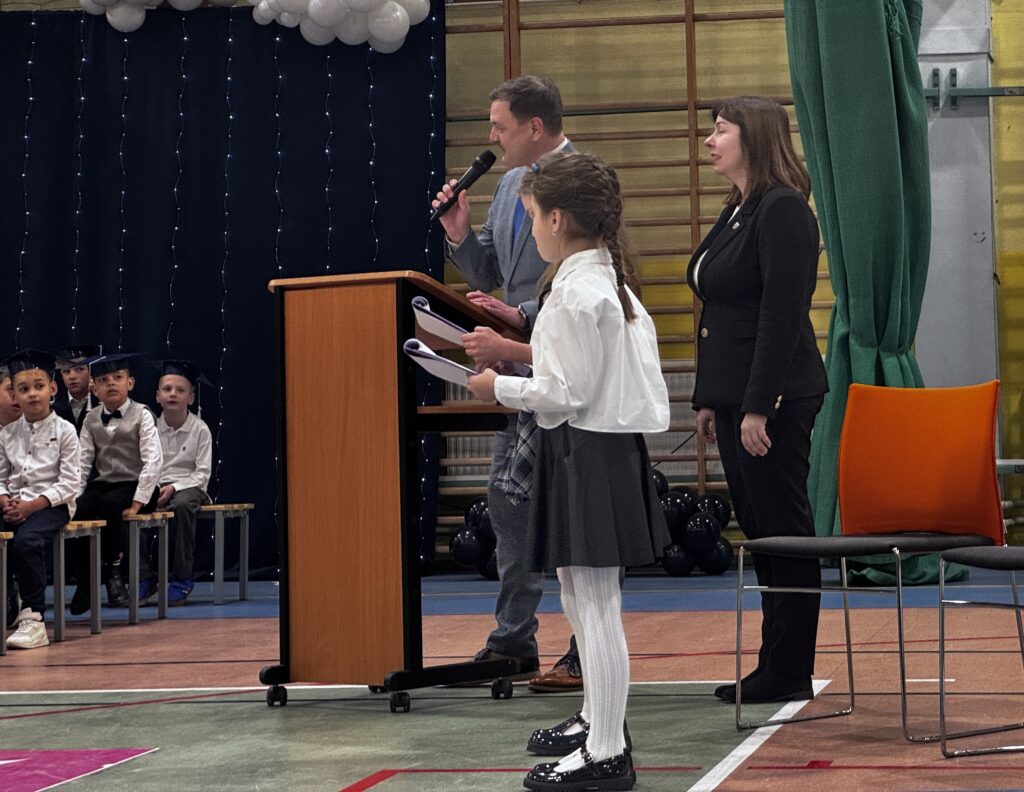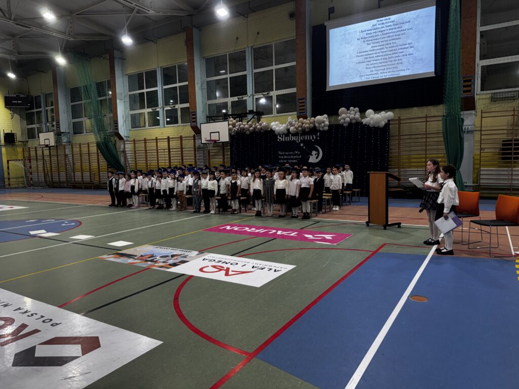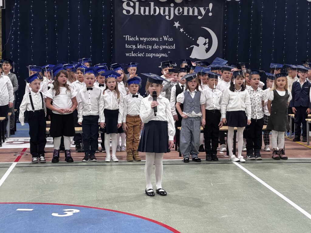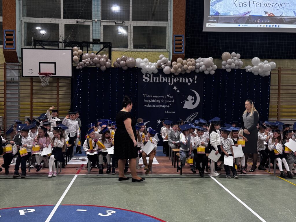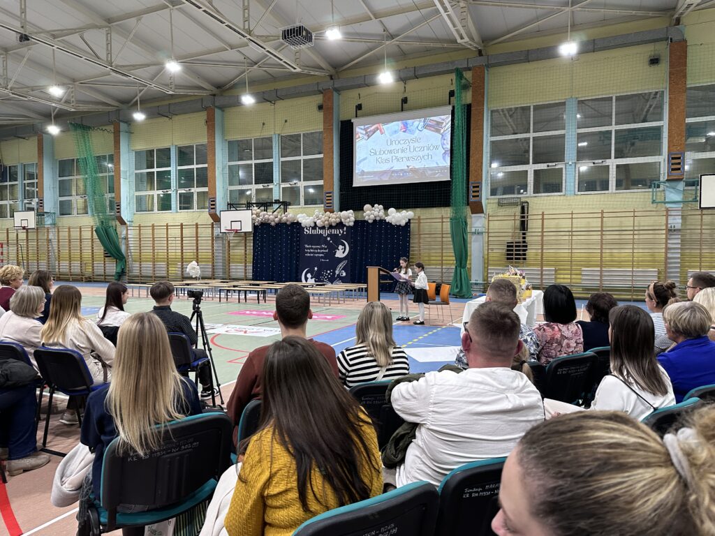 Pierwszoklasiści zaprezentowali krótki program artystyczny, a następnie z dumą złożyli ślubowanie. Po oficjalnym pasowaniu przez dyrekcję szkoły stali się pełnoprawnymi członkami społeczności szkolnej.